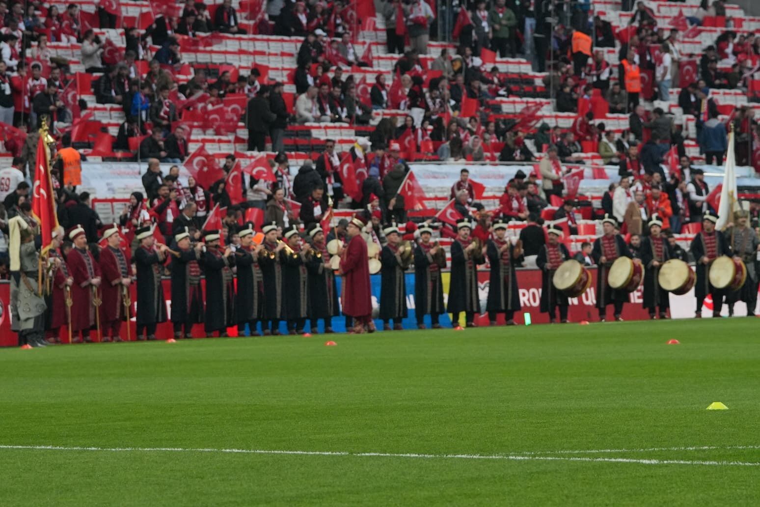 A Milli Futbol Takımımızın, 2026 FIFA Dünya Kupası Avrupa elemeleri play-off turu yarı final müsabakasında bugün Romanya ile karşı karşıya geleceği Beşiktaş Park’ta taraftarların çoşkusu dikkat çekti. Taraftarlar tribünleri kırmızı beyaza boyadı.